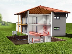 Вариантов устройства вертикального первичного контура достаточно много. Это могут быть вертикальные зонды, горизонтальная укладка труб в траншеи или котлован, укладка труб петлями в грунт либо водоем и т.д. Применение той либо иной конфигурации связано с наличием тех либо иных факторов. Определяющим может стать наличие свободной площади возле здания, глубина залегания скальных пород, наличие открытых водоемов а так же личные предпочтения заказчика.