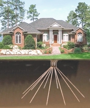 Приступая к установке тепловых насосов мы часто сталкиваемся тем, что отсутствует свободная площадь на участке для строительства системы вертикальных зондов и тем более горизонтальной укладки теплообменников. Для типичной застройки «украинского формата» следует располагать наличием свободных площадей для горизонтальных геополей - 200-500 м2, при вертикальном устройстве – 36 м2 для небольших домов и до 110 м2 - для домов площадью 300-600м2. Как правило, эта территория не выводится из пользования. В зоне геополей не рекомендуется осуществлять застройку, высаживать деревья с глубокой и мощной корневой системой, так как это может привести к повреждению геотермального поля. Что делать, если веские есть основания установить тепловой насос, и при этом не лишиться сада, а свободное место для устройства геотермального поля отсутствует.