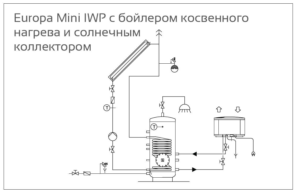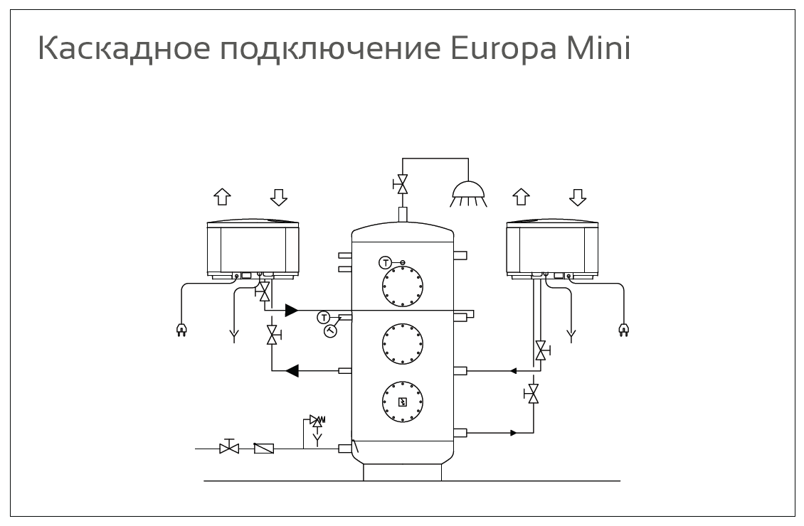 Горячее водоснабжение / осушение помещения / дополнительный обогрев с использованием буферного накопителя / возможно объединение с другими системами отопления, солнечными коллекторами.
