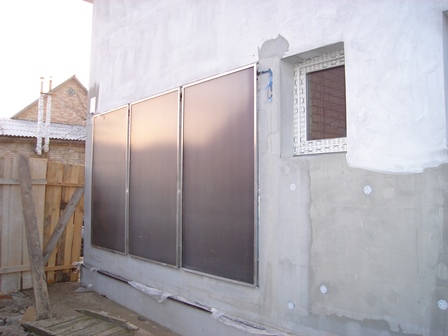 Крыша имеет достаточно сложный профиль, по этой причине было принято решение установить солнечные коллекторы на стенах с восточной и западной стороны.
