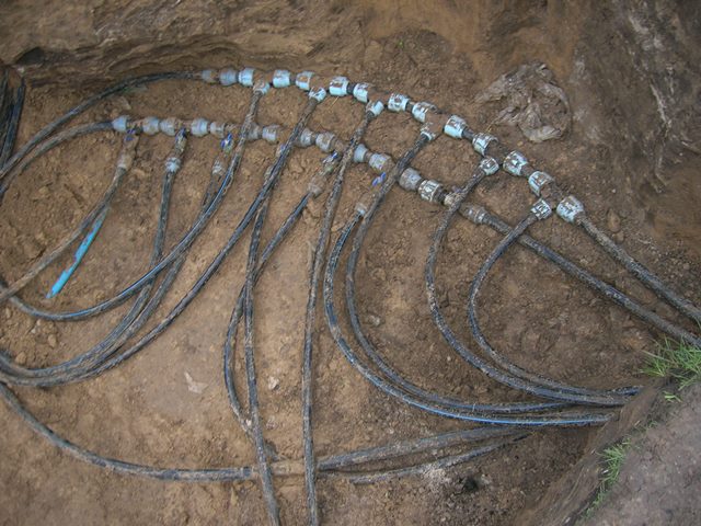Сечение соединительных труб тепловой насос - распределительный коллектор заужено. После вскрытия устья геотермальных скважин установлено, что скважины на 1/3 протяженности не затампонированы раствором и зонды висят в воздухе;