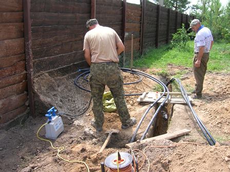 К сожалению, была возможность раскопать только порядка 60% скважин. После засыпки скважин с зондами грунт дал просадку и трубы повисли в воздухе. Проведенные расчеты показали, что при реальной протяженности работающих зондов теплосъем с погонного метра зонда составляет 80-90 Вт. Учитывая характер грунтов (пылеватые суглинки) и низкий статический уровень залегания грунтовых вод, было предложено пробурить дополнительно скважины, установить геотермальные зонды и подключить в единую систему первичного источника.