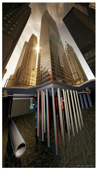 Проектом также определено устройство энергетических свай, которые обеспечат работу теплового насоса мощностью более 200 кВт для отопления и охлаждения. В результате реализованного проекта был построен тепловой источник для тепловых насосов тепловой мощностью 150-300 кВт и хладопроизводительностью 150-300 кВт.